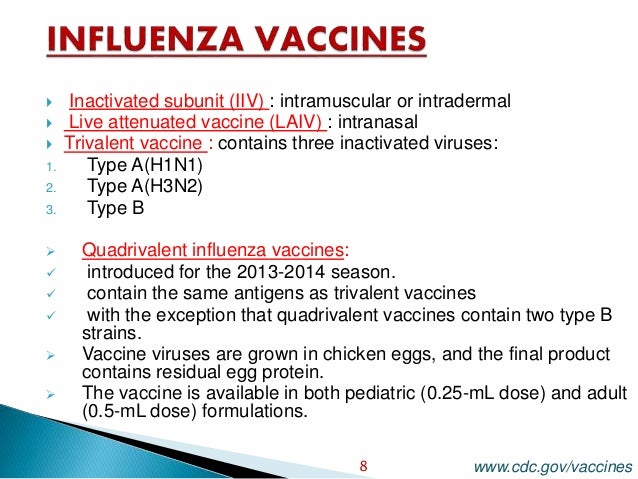 Recombinant virus-vectored vaccines are an appealing alternative to classical inactivated vaccines because virus vectors enable native expression of influenza antigens even from virulent influenza viruses while expressed in the context of the vector that can improve immunogenicity. Types of seasonal influenza vaccine. 27 rows Live Attenuated Influenza Vaccine LAIVNasal Spray Vaccine.